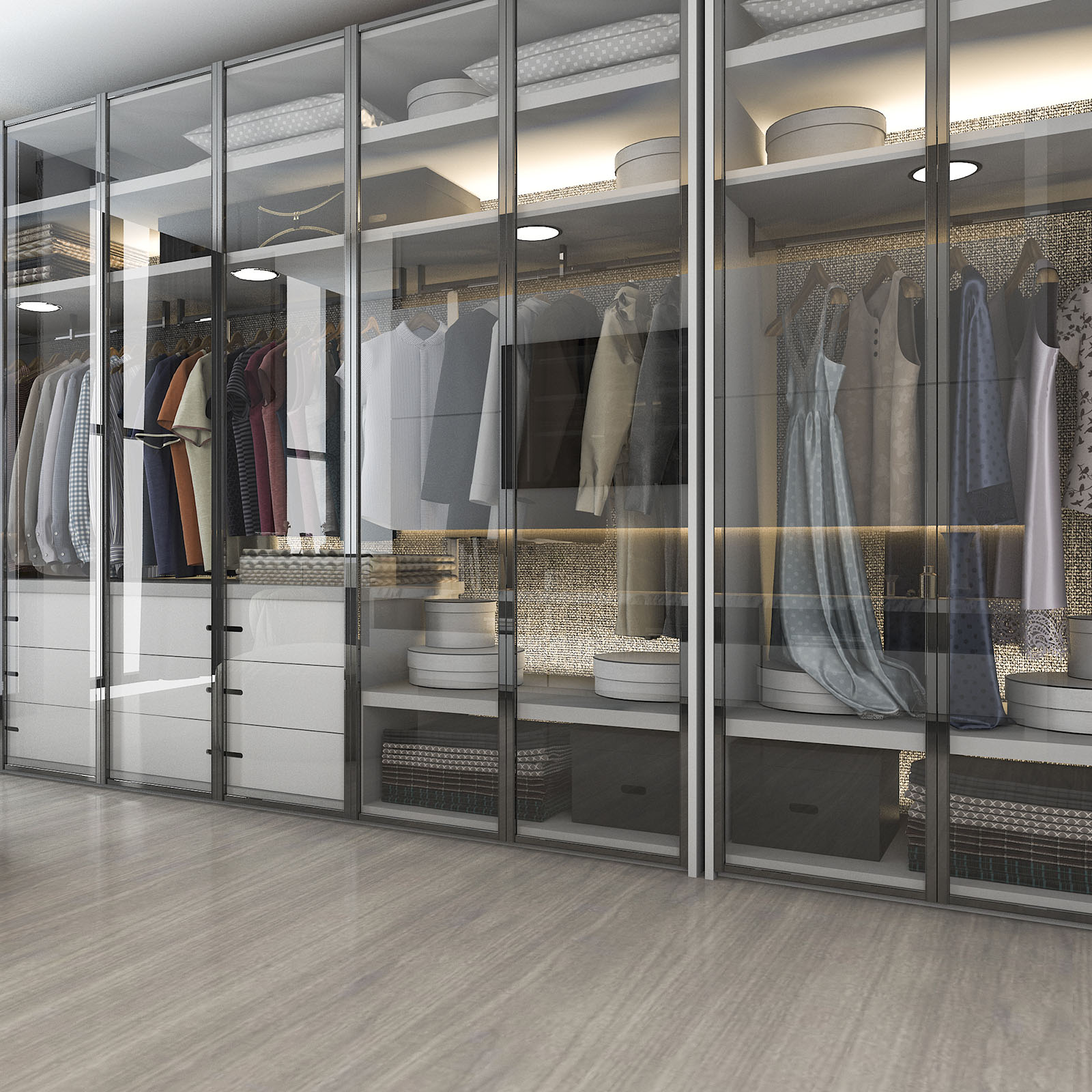 Alüminyumun net ve modern çizgilerini; camın şeffaflığı, aynanın derinliği ve ahşabın sıcaklığı ile birleştirerek, sadece bir dolap kapağı değil, aynı zamanda mekanınızın karakterini yansıtan bir tasarım öğesi yaratıyoruz.